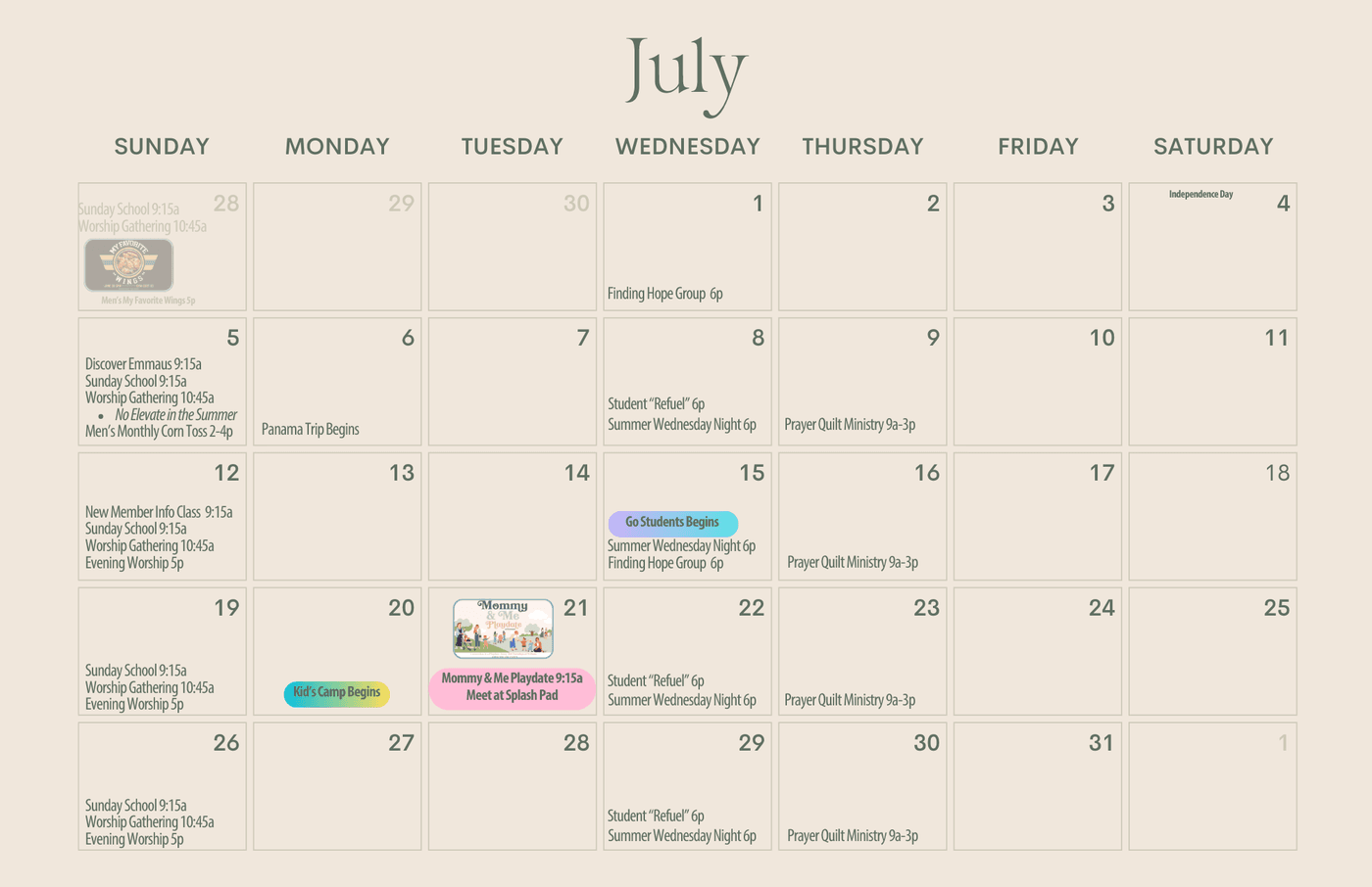 WEDNESDAY NIGHT ACTIVITIES: 6 PM